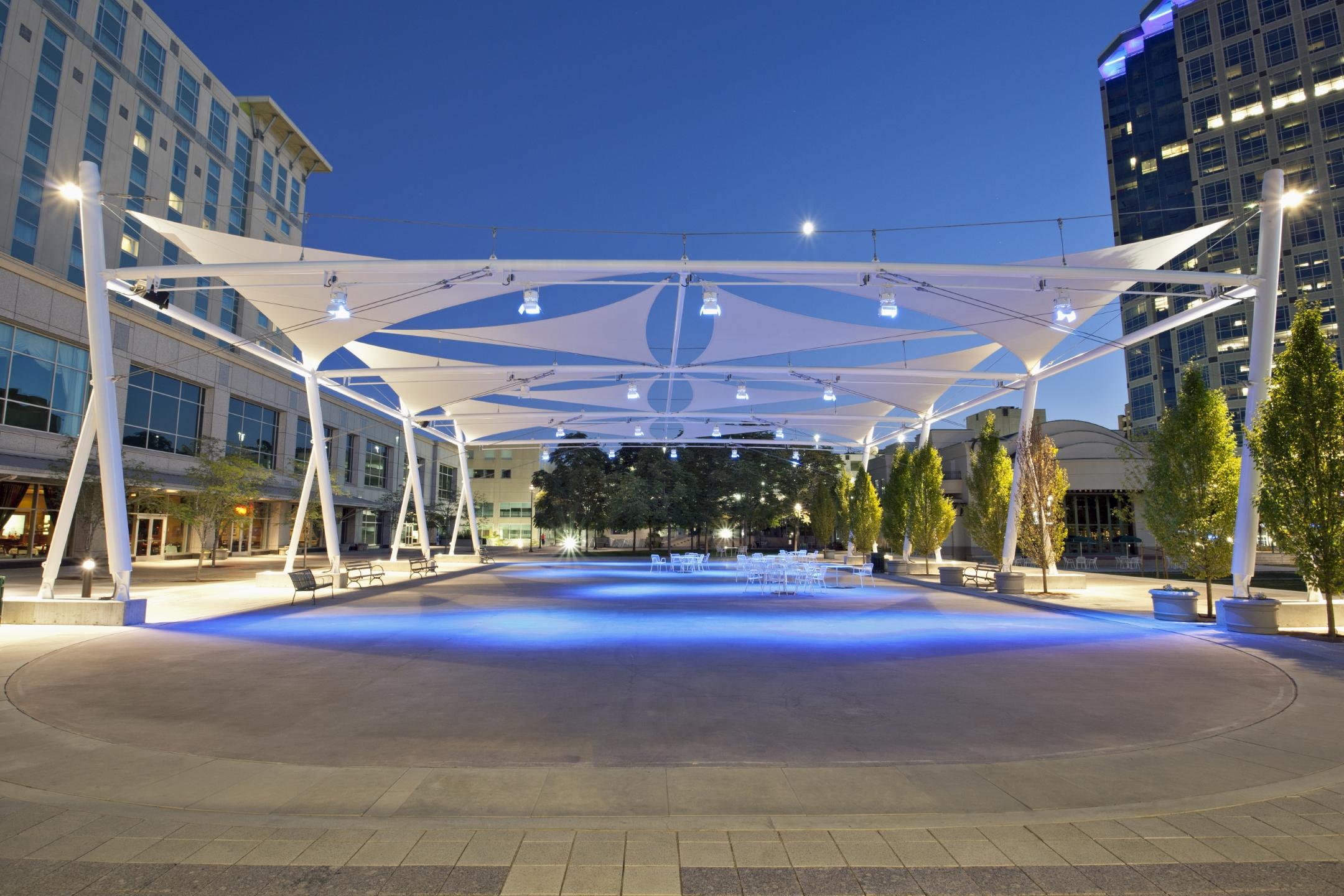 Located in the heart of Downtown Salt Lake City, Utah, the John W. Gallivan Center is an urban plaza that provides a variety of year-round entertainment. Visitors enjoy free concerts at the amphitheater in the summer, ice skating in the winter, and weekday lunch and concerts near the pond. The Gallivan Center also hosts festivals and private events, including weddings, all year long. The adjacent UTA TRAX light rail station increases access and foot traffic.