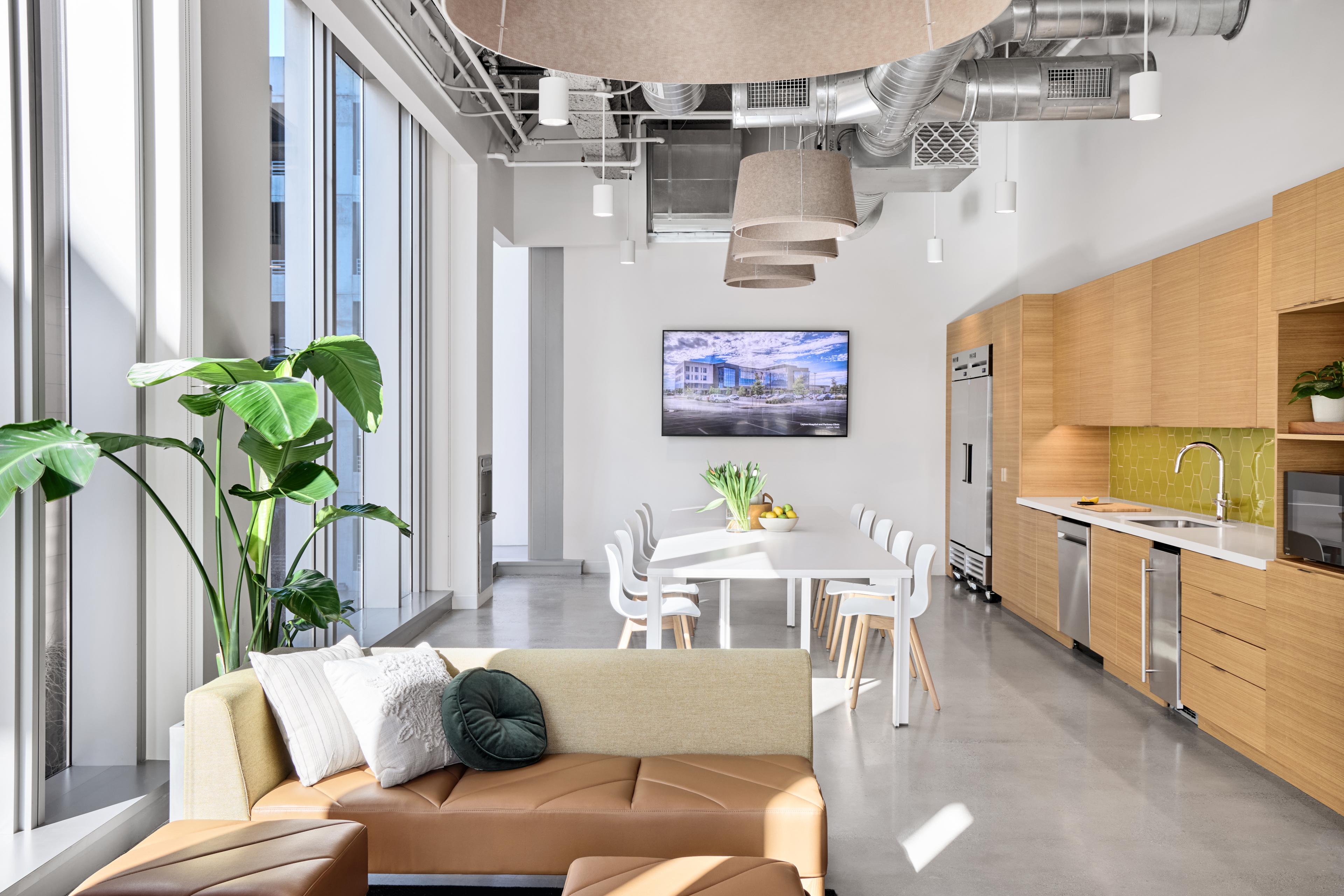 This tenant improvement buildout prepared a new home for HKS Architects in 222 Main, a premier downtown high-rise. The workspace features a welcoming reception area, versatile conference facilities, and an expansive open office layout with focus rooms and collaborative team spaces. A dedicated wellness center and modern breakroom support employee wellbeing. Working in an occupied multi-tenant high-rise required precision logistics and meticulous coordination to minimize disruption to neighboring tenants. Site constraints called for just-in-time deliveries throughout the project. The team also incorporated select doors and hardware salvaged from HKS’s previous office, balancing sustainability goals with design objectives.