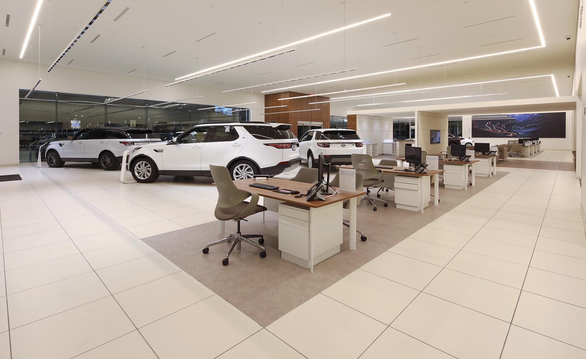 This project is a ground-up Jaguar Land Rover Dealership, located on the Penske Campus in Chandler, Arizona. The building features a showroom area, hospitality area, service shop area, service advisor/drop-off area, finance and insurance area, car delivery area and parts department with a parts storage mezzanine. This project had to be logistically planned so that the construction efforts and the Auto Group Business surrounding the project could build and operate in and efficient and productive manner during construction. To keep the businesses in seamless operations, our leadership team laid out traffic flow patterns, delivery flow patterns and product display areas so that there was a good experience when customers entered the campus.