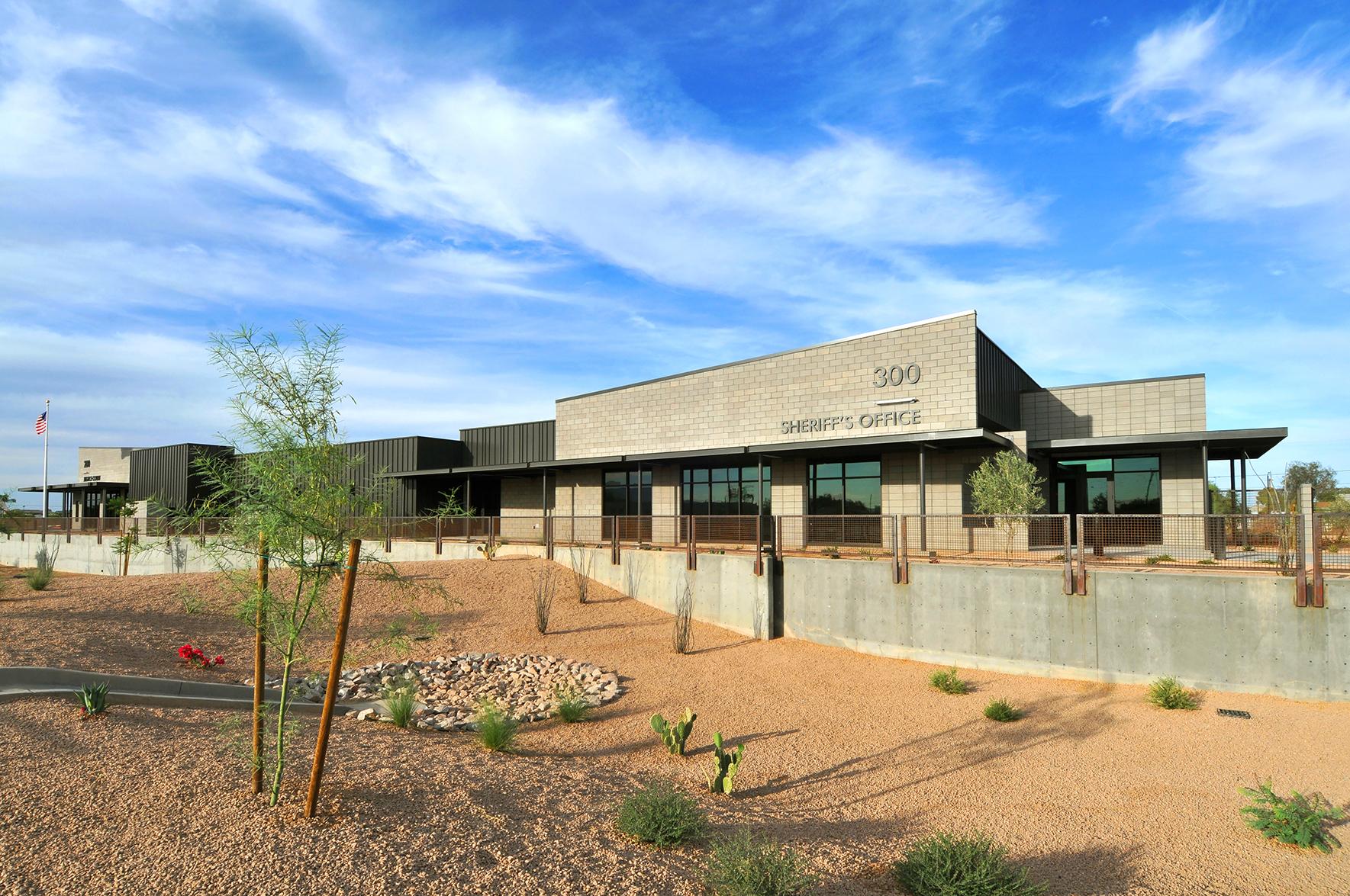 The Pinal County Complex, designed to house both the Western Pinal Justice Court and Maricopa Municipal Court, consists of two new single-story buildings, 8,314-sf and 24,046-sf respectively. The larger of the two wraps around the existing courts building with various structural additions and renovations, and will accommodate added courtrooms, judge’s chambers and facilities for the Pinal County Sheriff including holding cells, interview rooms, office space and K9 kennels. The smaller facility houses general offices for Pinal County employees, including the county treasurer and assessor. Scope involved site demolition of an existing parking lot, hardscape and landscape, civil, structural steel, beams and columns, selective demo, concrete, masonry, steel stud framing, FA, TPO roofing, curtain wall systems, aluminum storefront systems, mechanical yard, and steel canopies.