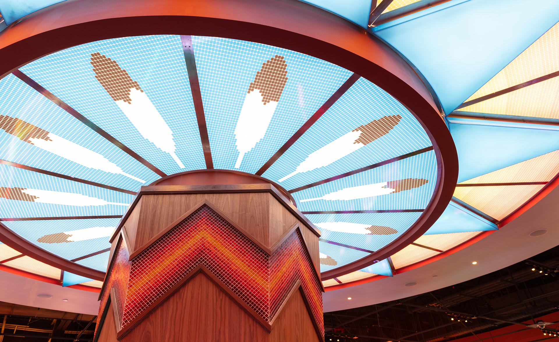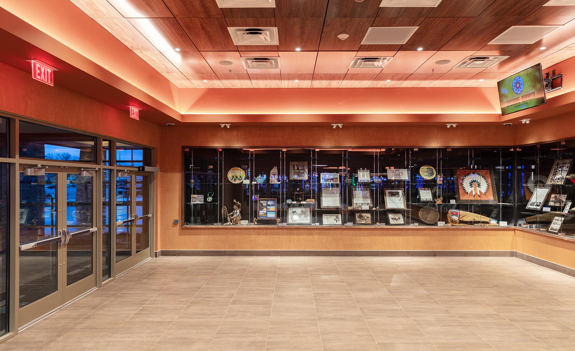 Located on the Fort Hall Indian Reservation in Pacatello, Idaho, this 85,463-sf, Shoshone-Bannock Casino Expansion connects the casino to the existing Shoshone Bannock Hotel and Event Center. The project scope includes site work, a porte-cochere, casino floor, back of house, a buffet food service, renovation of an existing deli and a pre-function corridor at the north side of the Event Center and Hotel storage space. The indoor corridor was a necessity to alleviate the need for guests to travel outside during the sometimes-harsh chilling Idaho winters. The new casino floor features over 900 gaming machines, a High Limit area with 44 gaming machines and a new 258-seat bingo hall as well as a lounge area. High-end finishes are highlighted by a structural design that showcases the tribe’s heritage throughout the facility. Substantial completion was achieved in 9 months.